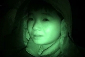 Eight-year-old Chung Eun-chul, one of the 12 North Korean refugees activist Chun Ki-won is smuggling out of China, prepares to cross the border into Mongolia under the cover of darkess.